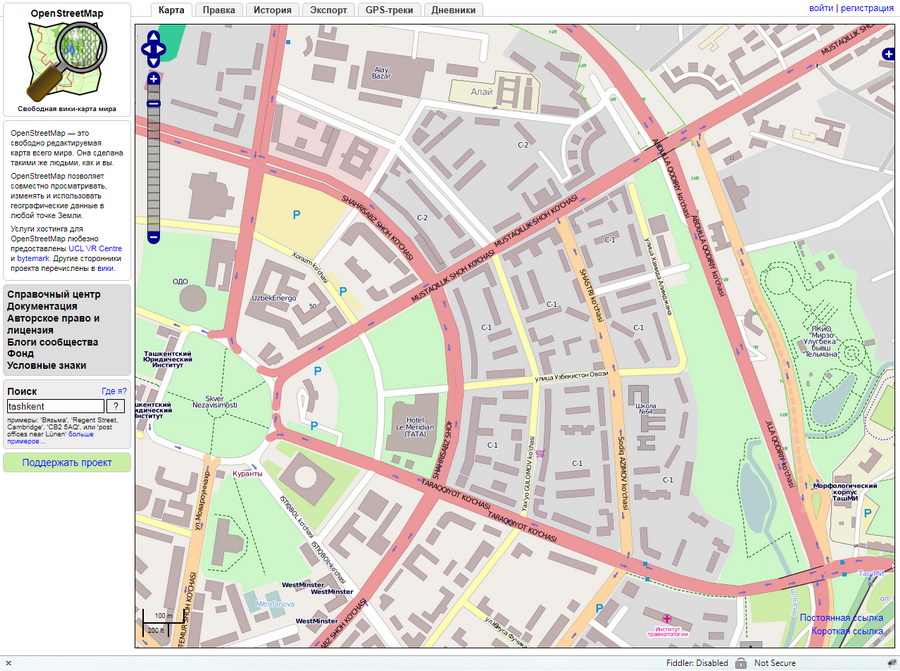В качестве иллюстрации один и тот же участок Ташкента в трех сервисах: НЯК, OSM и GMM